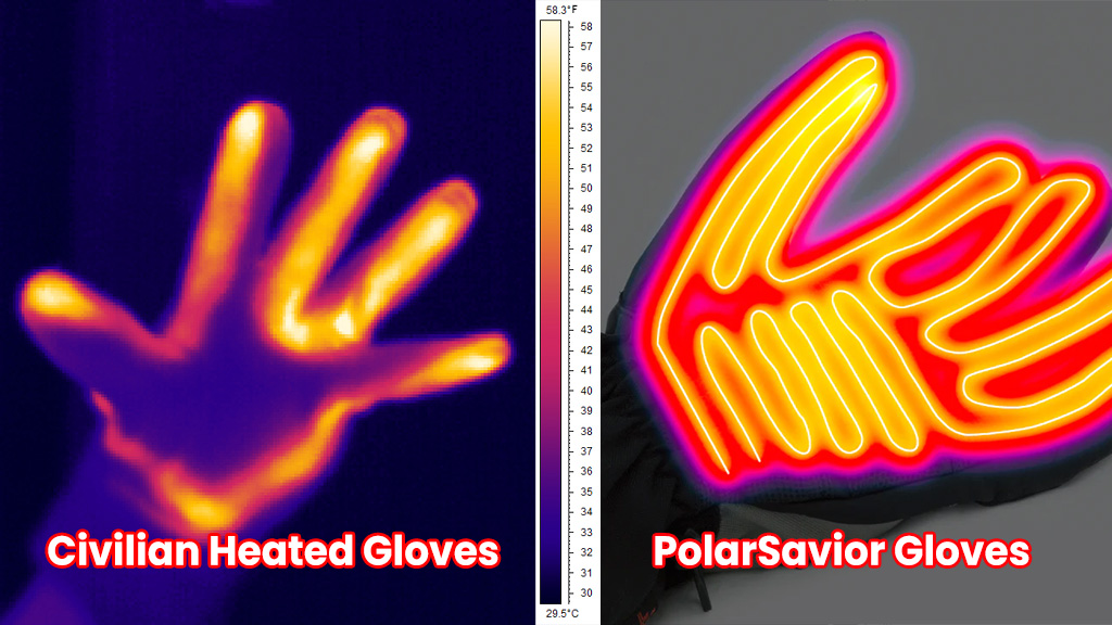Using C.S.S.D. technology, PolarSavior ensures even heating across fingertips and the back of the hand, unlike traditional heated gloves.