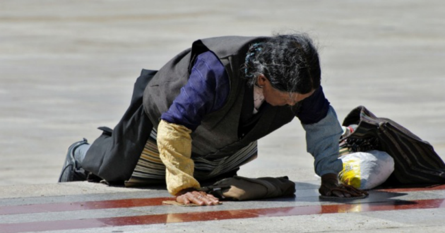 The movie "Paths of the Soul" (2017) traced the real story of a Tibetan family, young and old, who made their pilgrimage by continuously prostrating themselves on the ground from Markam, Chamdo Prefecture of Tibet to Nyingchi, Lhasa and eventually holy Mt. Kailash believed to be the centre of the universe in Tibetan Buddhism, which means a 10-month odyssey along the 2000km route.